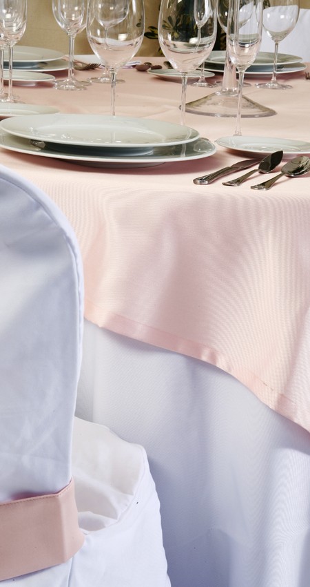 Cubre mantel para mesas redondas de 1’80 M en color rosa.