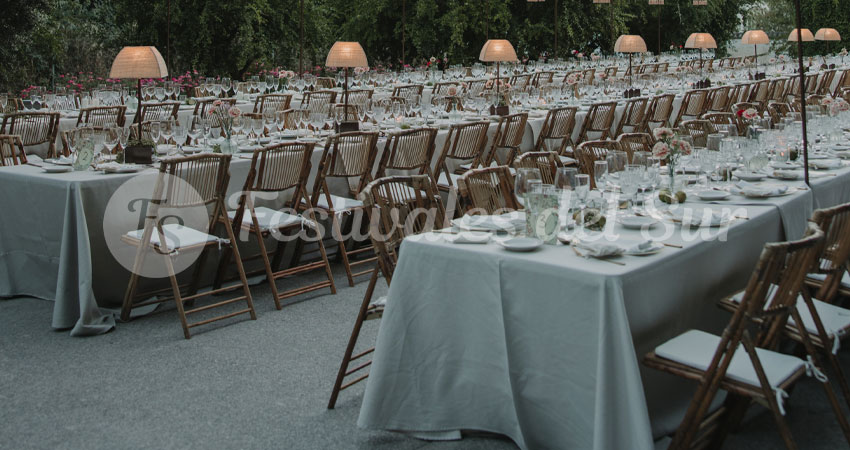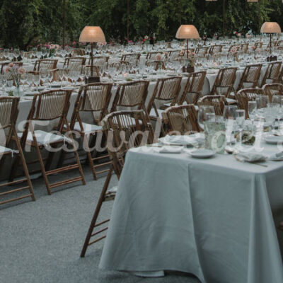 También se puede utilizar en mesas rectangulares de 1,80×0,75 m y en mesas altas de cocktail.